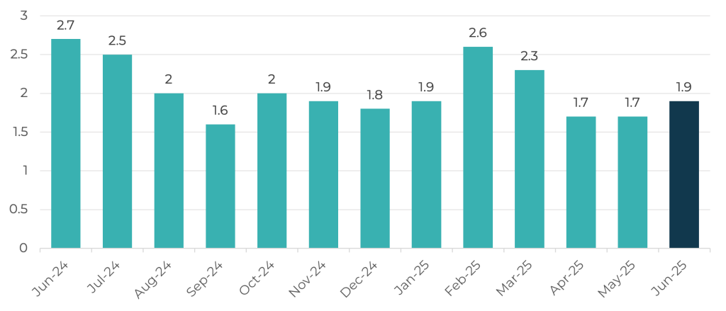 Figure 1: Annual Inflation Rate in Canada (%), June 2024-June 2025[6]